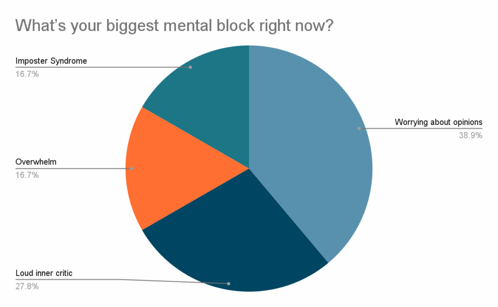 Recently, I ran a poll asking, “What’s your biggest mental block right now?”